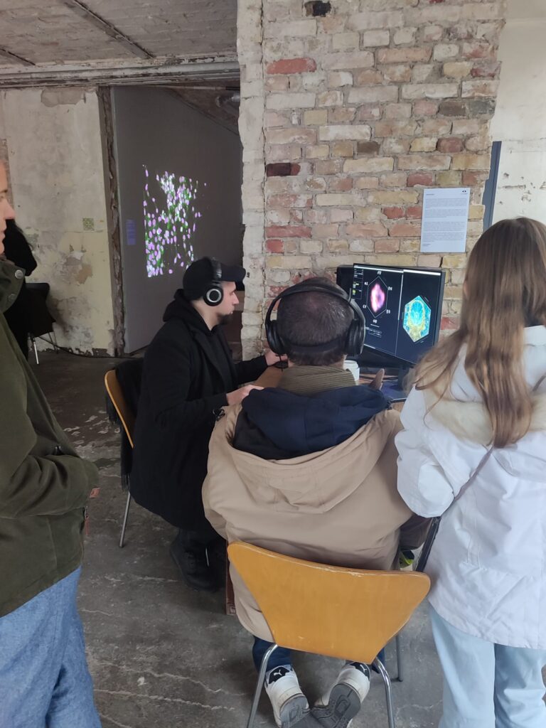 Visible Residues by Suha Arda Soykan and Tolga Soykan. Exploring how we perceive and interpret the body, this work transforms high-resolution cellular imagery into layered visual compositions. Blending tactile forms, ecological metaphors, and somatic memory, it creates an immersive environment where scientific and and artistic languages resonate, revealing the tension between what is measurable and what is felt.